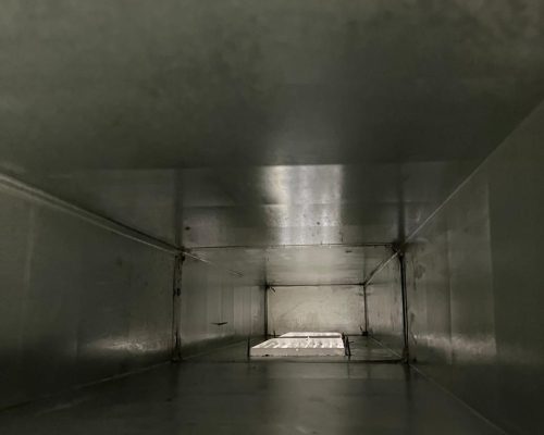 только после тщательной очистки, поскольку толстый слой загрязнений препятствует проникновению дезинфицирующих средств к внутренней поверхности воздуховода.